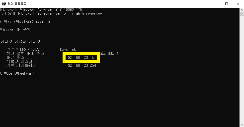 IPv4 주소에 나오는 숫자를 PC방 공유기의 DMZ 설정에서 등록해줍니다.