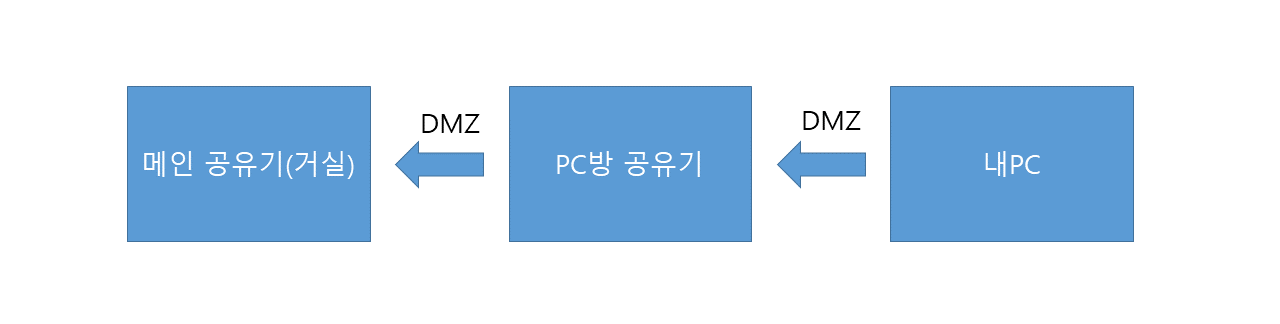 설정이 완료되면 PC방 공유기의 IP를 메인 공유기의 DMZ 설정에 등록합니다.