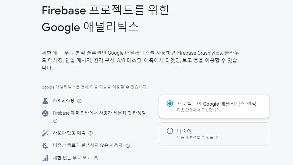 프로젝트에 구글 애널리틱스를 설정해줍니다.
