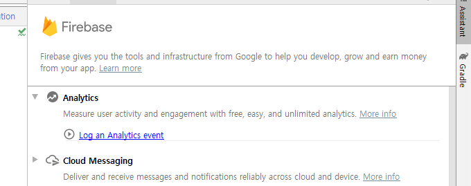 이렇게 오른쪽에 FIrebase Assistant가 열립니다.