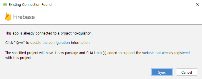 이미 프로젝트에 연결되어있다고 나오네요. Sync를 눌러주세요.