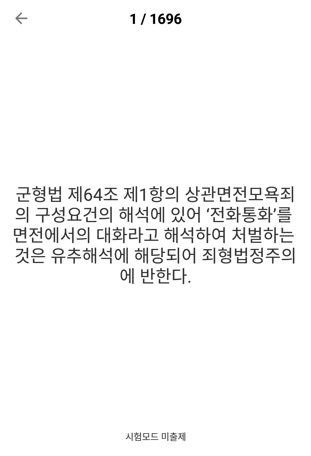 현재 가능한 과목은 형법(1696문제)뿐이지만 추후 지속적으로 과목을 추가할 예정입니다!!