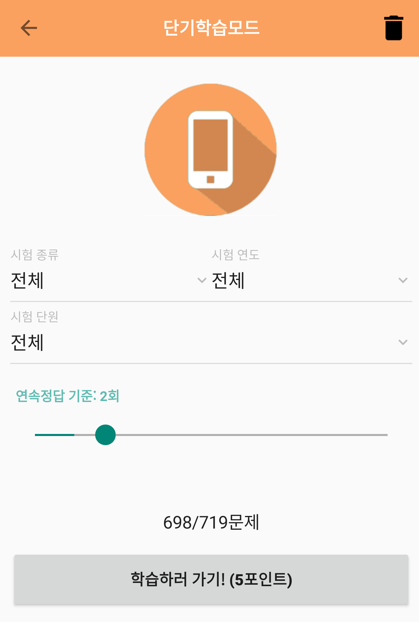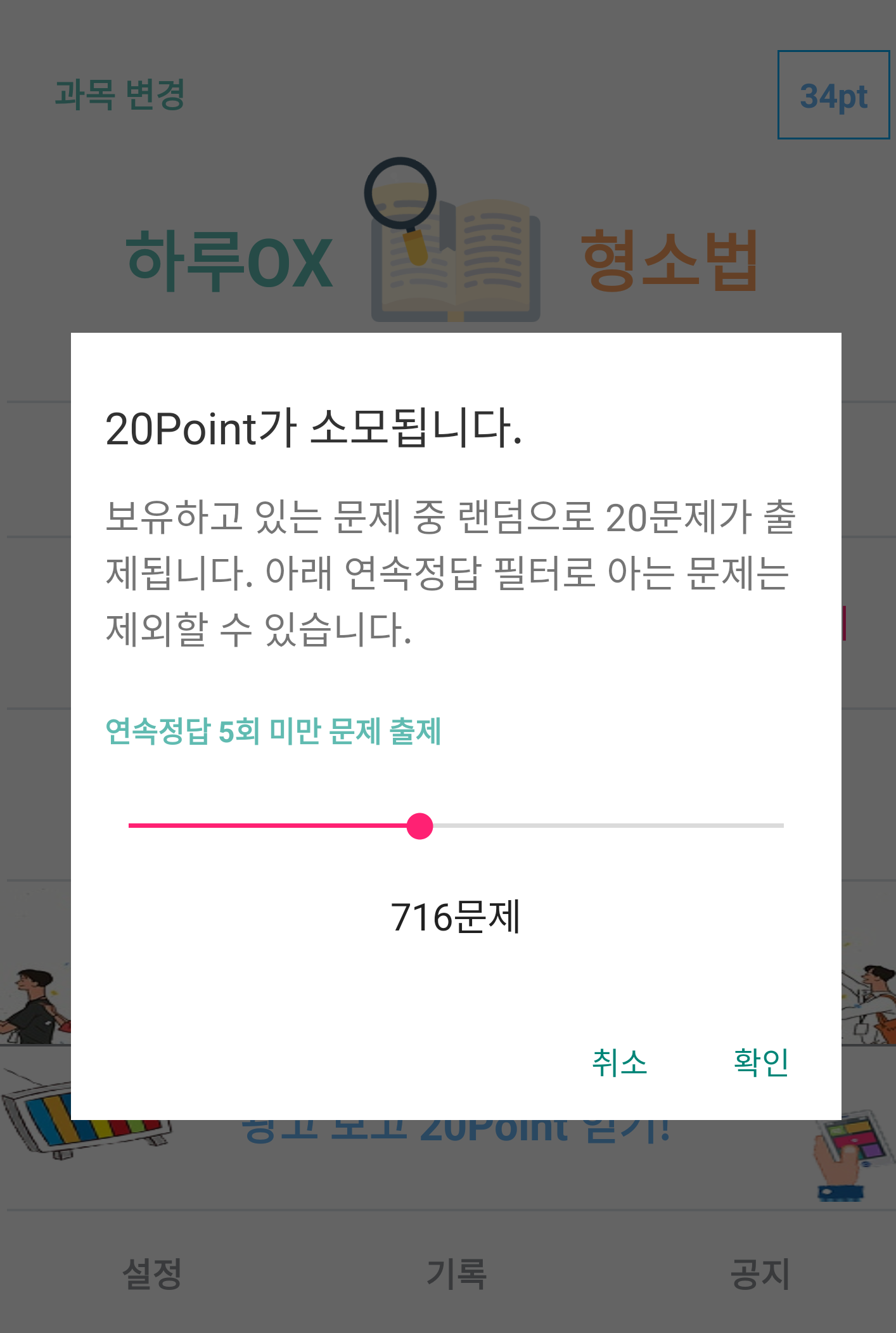 단기학습모드는 5포인트를 소모해 20문제를 학습할 수 있는 모드입니다.