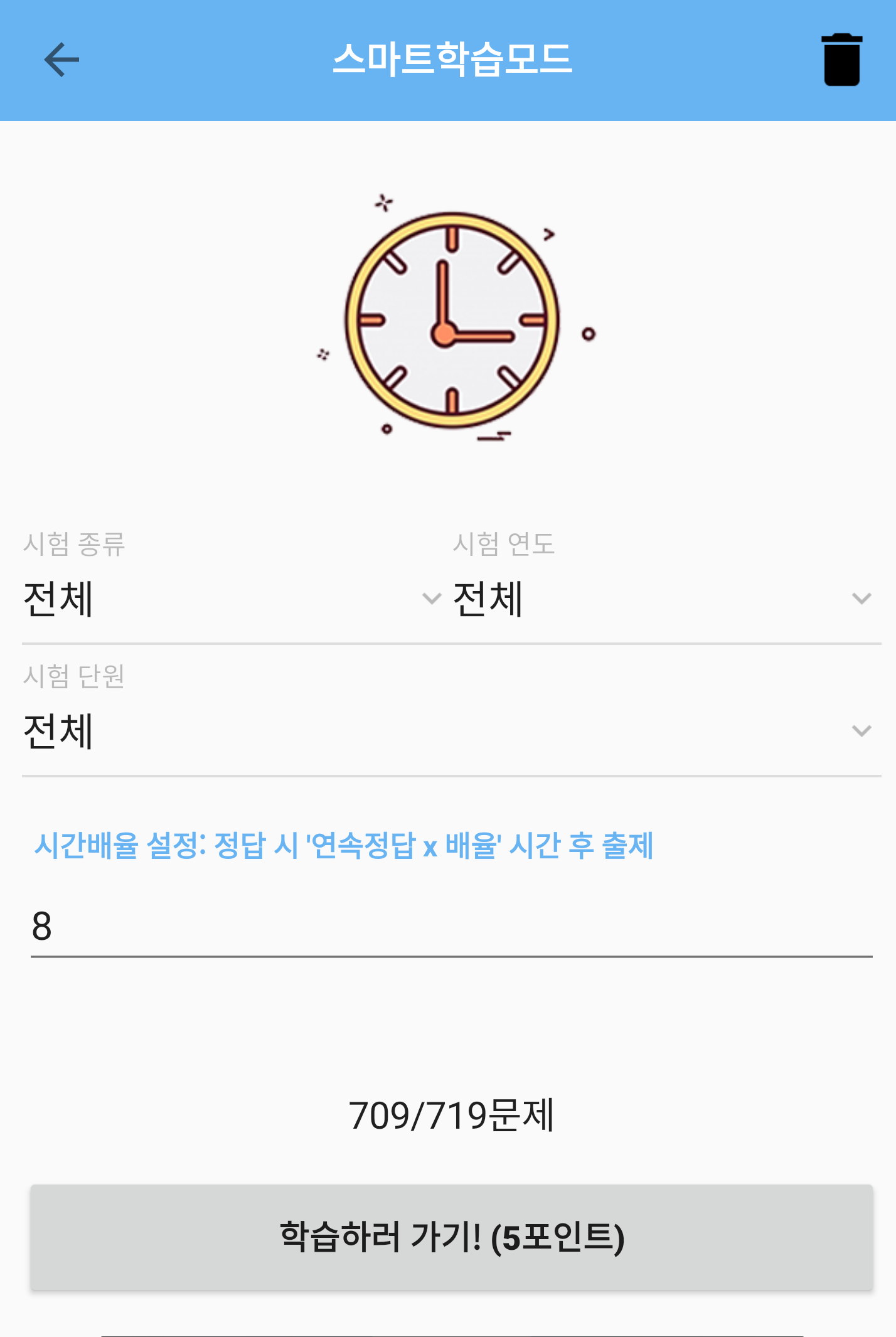 스마트학습모드는 시간 배율을 기준으로 출제되는 방식입니다.