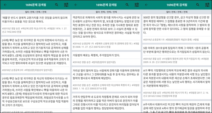 4. 형법, 형소법의 경우 검색 기능을 통해서 문제, 판례를 바로바로 검색할 수 있어요. 해당 문제의 판례 전문이 링크로 연결되어 있어 판례 학습에도 아주 좋습니다.
